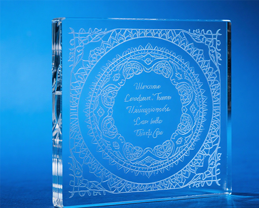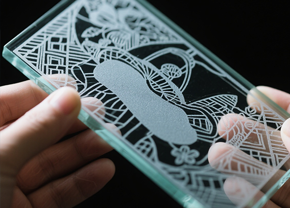 Ein CO₂-Laser wird von der Glasoberfläche gut absorbiert und wird üblicherweise zur Oberflächengravur verwendet. Der Gravureffekt eines CO₂-Lasers erscheint als mattiertes, weißes Muster und eignet sich daher für Werbung, künstlerische Dekoration und Geschenkbeschriftung. Ultraviolette (UV) Laser hingegen verfügen über eine kürzere Wellenlänge und arbeiten im „Kaltbearbeitungsmodus“ mit einer minimalen Wärmeeinflusszone. UV-Laser sind in der Lage, feine Linien, QR-Codes und Logos zu erzeugen.